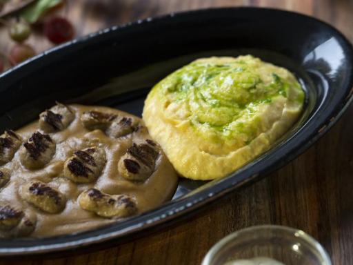 Bøf stroganoff med rodfrugtmos, asier og basilikum (cremet)